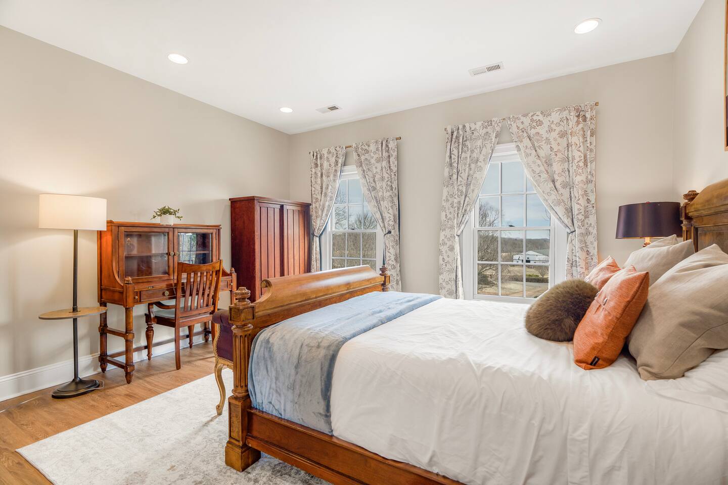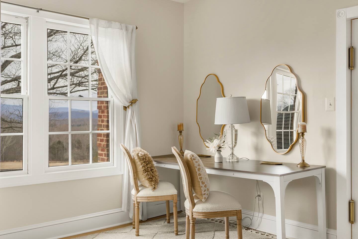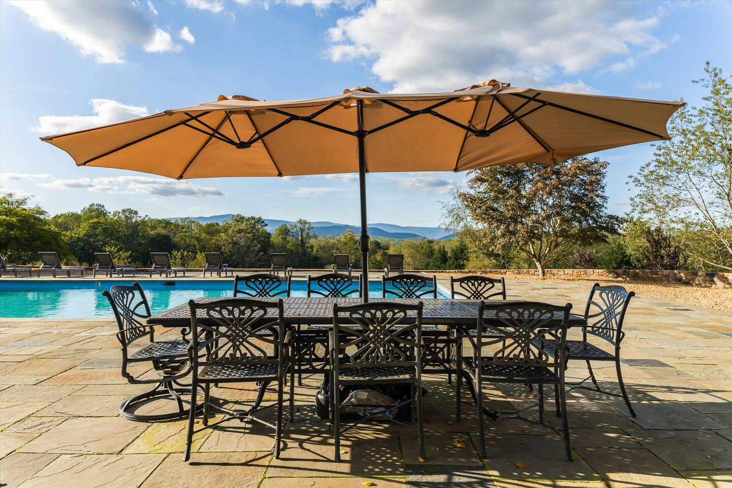 Getting here feels like stepping into a story. As you wind along scenic country roads, past rolling pastures and the Blue Ridge Mountains, you’ll understand why we call this place Mountain Mama Ranch. Just 90 minutes from DC, yet worlds away, it’s where freedom, nature, and home all meet. <b>✦ Grand Entrance</b> Drive through the gated entry and up the cherry tree-lined lane, greeted by sweeping mountain views and our gentle Texas Longhorns roaming nearby. At the end of the road, the farmhouse awaits - warm, welcoming, and designed for togetherness. <b>✦ First Floor</b> • Formal dining room with a long wooden table • Spacious living room with fireplace, reclining sofas, Yamaha piano & French doors that open to mountain views • Ground-floor suite with ensuite bath. Ideal for seniors or anyone seeking privacy • Light-filled gym with mountain views • Quiet library room • Laundry room <b>✦ The Kitchen</b> • Open chef’s kitchen with large island, two ovens, fridge, freezer & gas stove • Cozy sun room perfect for lounging with a view • Casual dinning table • Espresso & coffee maker • Sunset views from the windows while you cook and gather around the table <b>✦ Second Floor</b> • Master suite: king bed, spa bathroom with soaking tub & walk-in shower, lounge nook & stunning views • Three guest suites: each with queen beds, private baths, workspaces & dreamy mountain outlooks <b>✦ Speakeasy Basement</b> • Home theater for movie nights • Pool table, bar & wine cellar • Cowboy-themed gallery wall for fun photo ops • Two bedrooms: one with king bed, one with two queens, each with private bath <b>✦ Outdoor Paradise</b> • Spacious patio with Blue Ridge mountains as backdrop • 70x25 ft In-ground Pool: open late May to mid September. (check with us for exact dates) • Huge fire pit for cozy nights under the stars • Bocce ball court • Wellness Garden with hot tub, barrel sauna, cold plunge & outdoor shower • BBQ grill & large outdoor dining table • Plenty outdoor seating to relax and enjoy the views <b>✦ Cozy Nights & Extras</b> • First bundle of firewood included. Extras available for purchase • Ask us about private chefs, in-home massages, grocery delivery, or a driver for winery tours • On-site ranch manager nearby for emergency support • Family-friendly: high chair, pack ’n play & baby gates available on request